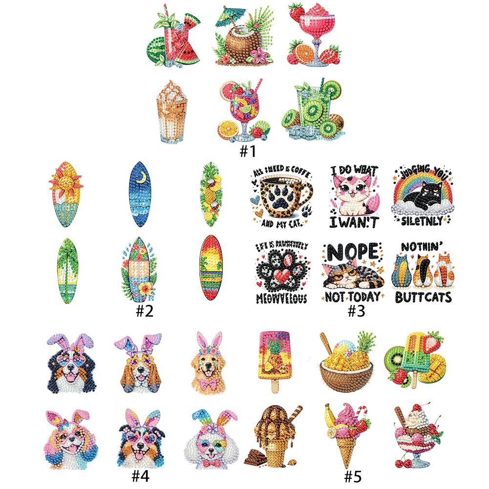 6Pcs 2D/Flat DIY Diamond Painting Fridge Magnets Crystal Sparkling Diamond Magnets Set for Refrigerator Mailbox Decor