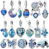 Copper Beaded Pendant Blue Shiny Zircon Suitable Original 3Mm Bracelet Women Fine Jewelry