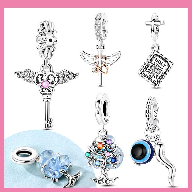 100% Real Copper Original Pink Wings Heart Key Charms Colorful Tree Of Life Bead Fit Bracelet Diy Jewelry Gift