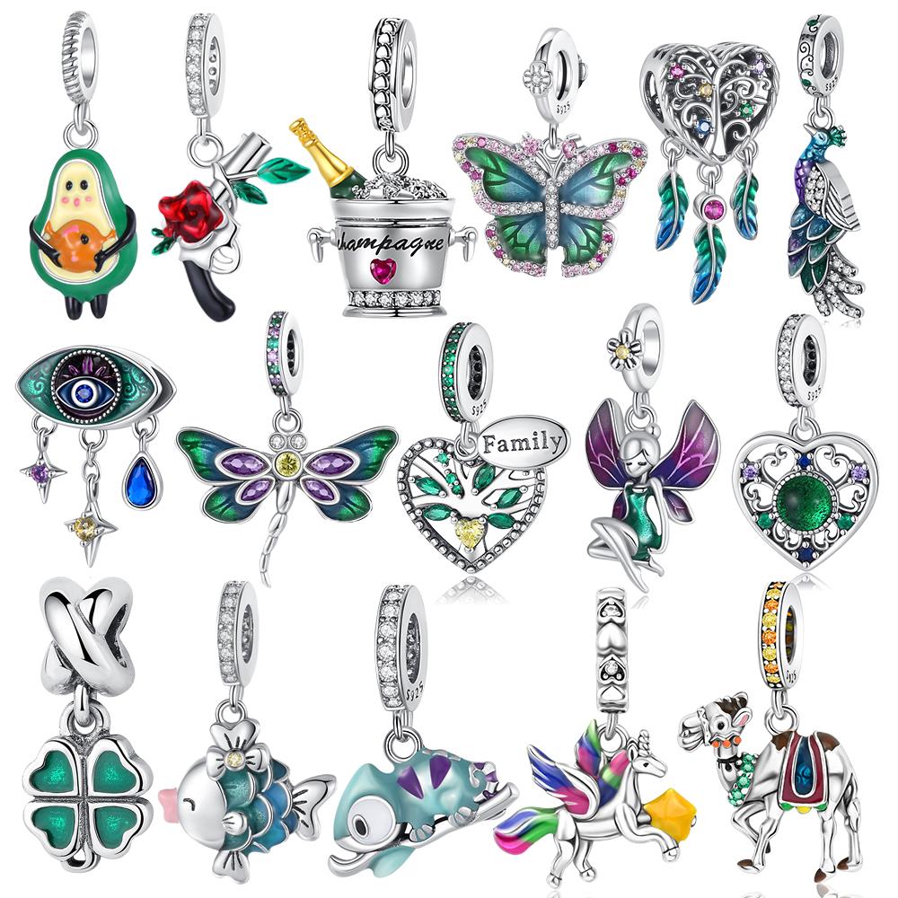 Green Copper Chameleon&Elf&Clover&Rose Pistol Dangle Charm Fit Diy Bracelet Jungle Style Jewelry