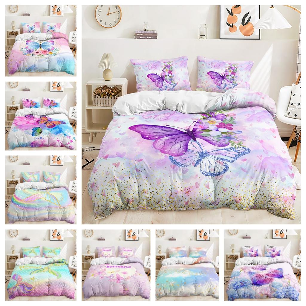 Quilt Cover Mermaid Butterfly Pink Purple Bedding Decoration Digital Printing Three-Piece Set