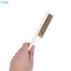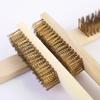 12pcs Wooden Handle Brass Wire Brush: Industrial Surface/Inner Polishing, Grinding, Cleaning, 6x16 Row Brushes - Car Care Tools