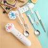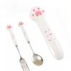 Cute Cat Paw Cutlery Set Stainless Steel Fork Spoon with Storage Box Dinnerware Tableware Silverware Lunch Bento Accessories