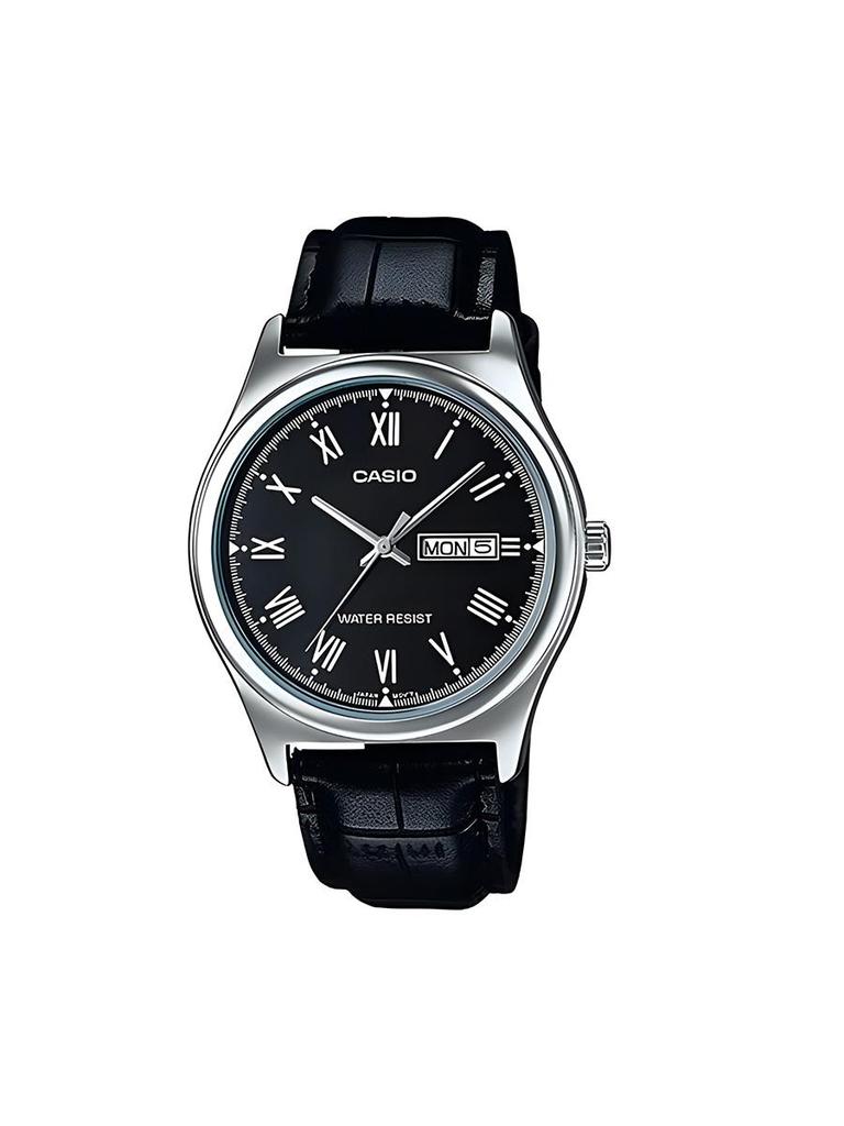 Casio - Leather Strap Black Dial with Date Men's Quartz Watch MTP-V006L-1B