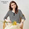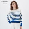Komongboka Women's Autumn/Winter Black & White Striped Round Neck Wool Sweater