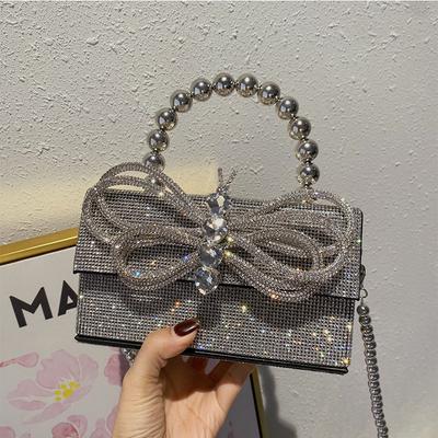 Transparent Bead Handbag With Bow Design And Top Opening For Night And Day