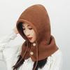 Women Knitted Wool Balaclava Hat Autumn Winter Soft Warm Wollen Scarf Beanies Button Adjustable Fashion Skullies Cap Girl