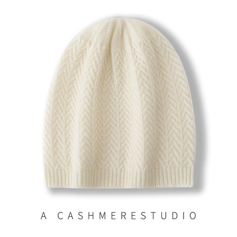 Women 100% Pure Cashmere Solid Color Beanie Hat Knit Pattern Winter Warm Soft Slouchy Skullies Cap Cold Weather Accessory