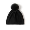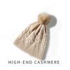 Women 100% Pure Cashmere Solid Color Beanie Hat Pom Pom Detail Knit Winter Warm Soft Slouchy Skullies Cold Weather Accessory
