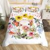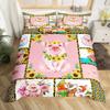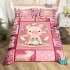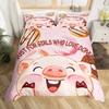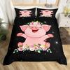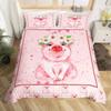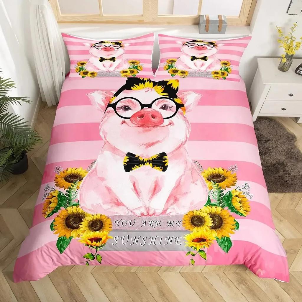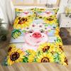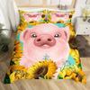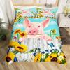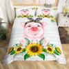 Cute Pig sunflowers Florals Pink Grid Lattice Plaid Comfortable Duvet Quilt Cover Pillowcase Bedding Set Bedroom Home Textile