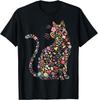 Floral Cat Animals T-Shirt Girls Decorative Kitty Tee