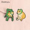 Doge Meme Enamel Pins Cartoon UV Printing Dog Brooch Lapel Badges Cute Shiba Inu Frog Hat Animal Jewelry Gift for Friends