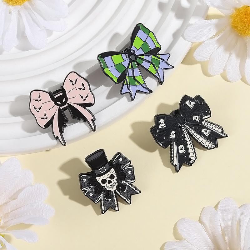 Punk Gothic Bow Enamel Pins Custom Spider Bat Skeleton Brooches Lapel Badges Clothes Funny Jewelry Gift for Friends