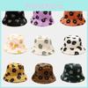 Leisure Plush Cute Bucket Caps with Little Print Flowers,Women Autumn Winter Stars Warm Fishmen Hat Thick Faux Fur skullies Hats