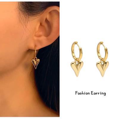 Chic Geometric Heart Design Heart-shaped Copper Earrings For Women In Gold And Silver