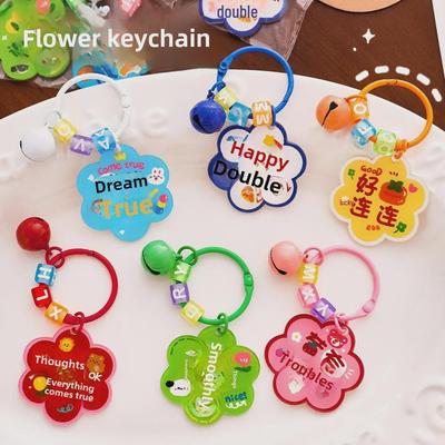 İlham Verici Çan Kolye Ucu ile Çizgi Film Çiçek Akrilik Anahtarlık