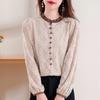 Woman Spring Stand Collar Casual Lace Tops Ladies Commuter Long Lantern Sleeve Elegant Tops