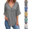 Women's Casual V Neck Button Shirt Classic Short Sleeve Shirt Tops Fashion Loose Solid Color