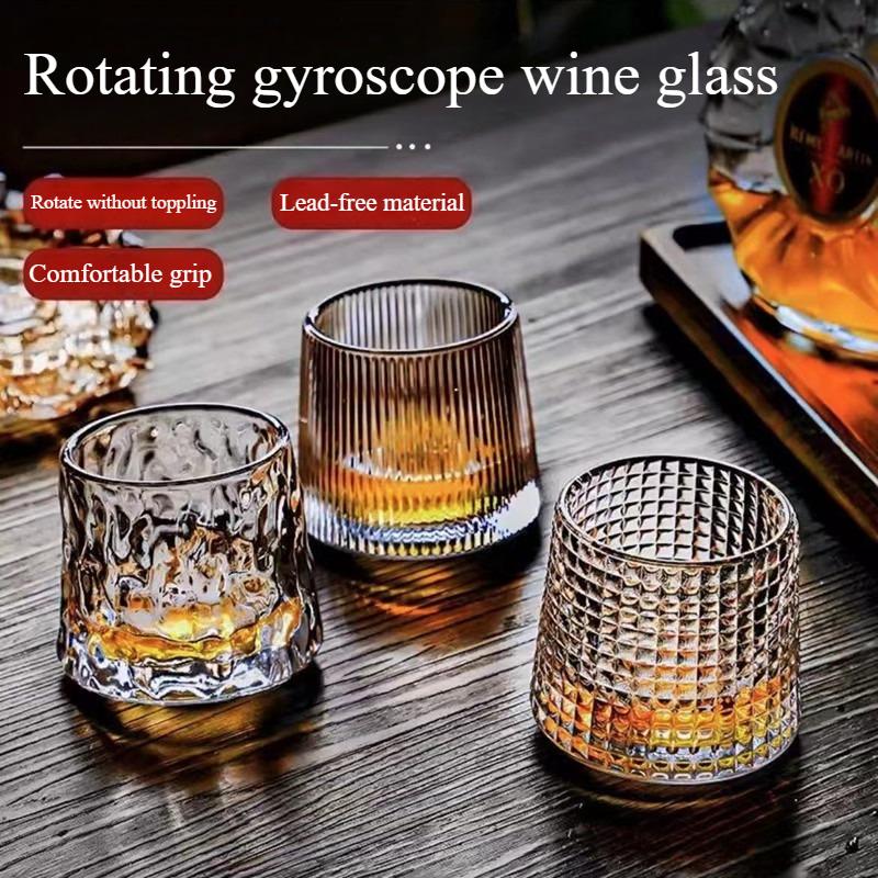 Thickened Crystal Whiskey Tumbler Rotating Non-Tip Scotch Bourbon Cocktail Glass Barware Home Use Rocks Cup for Cold Drinks