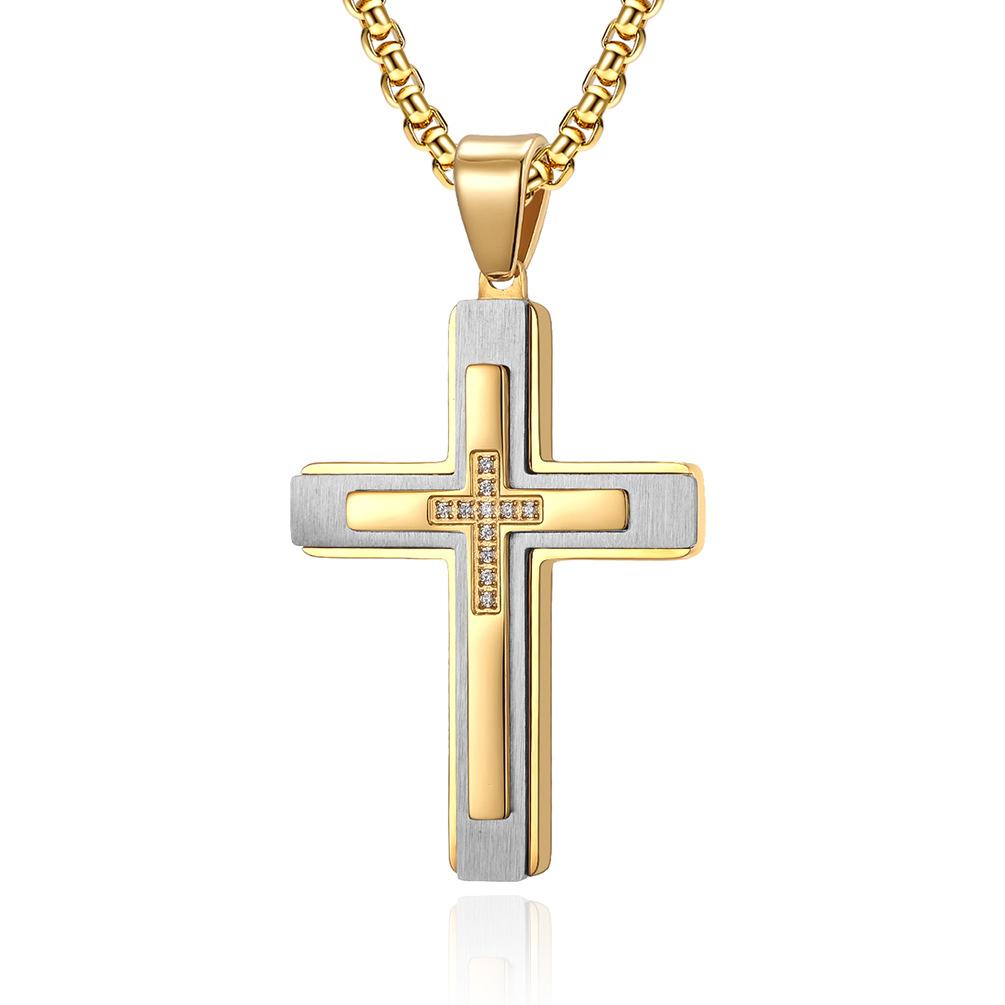 2025 Jewelry Inlaid Zircon Cross Pendant Clavicle Chain Men's Classic Personalized Versatile Necklace