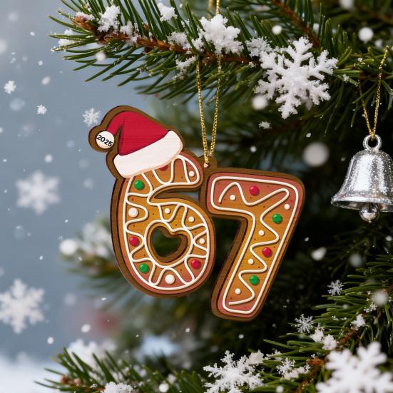 Designed in the shape of the number "67," styled like a gingerbread cookie, it adds a personalized touch to your decorations, ideal for commemorating special years or numbers.