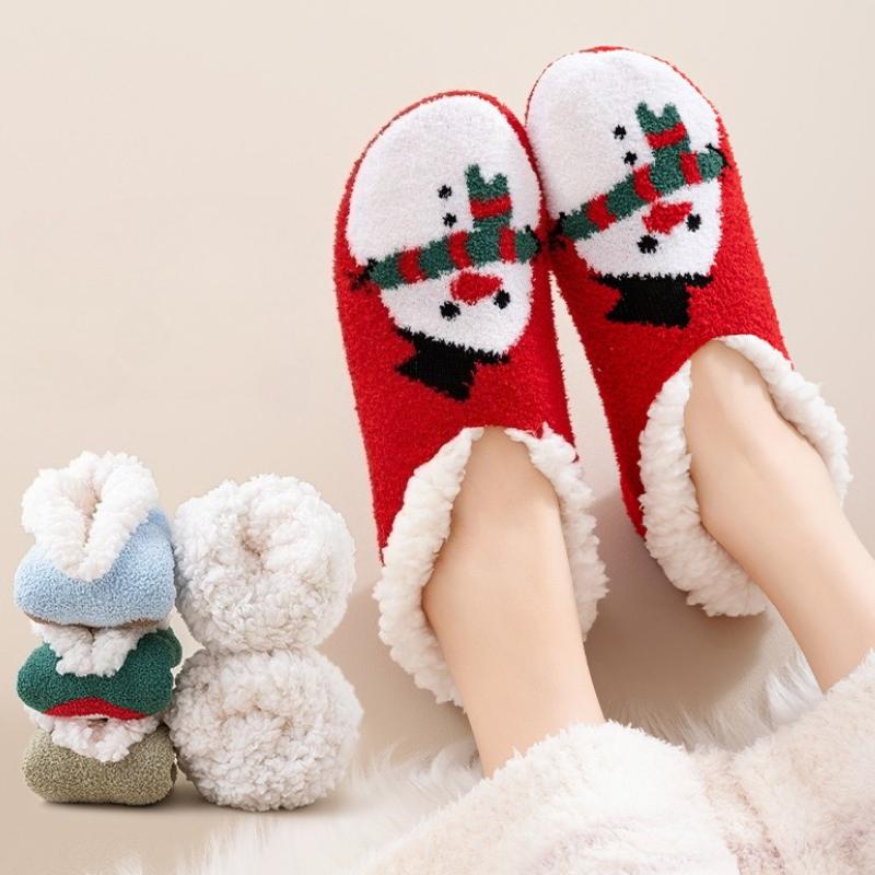 Fashion 1 Pair Cute Cartoon Christmas Home Floor Shoes Woman Winter Indoor Socks Shoes Soft Plush Anti-slip Sole Girls Warm Cotton Shoes