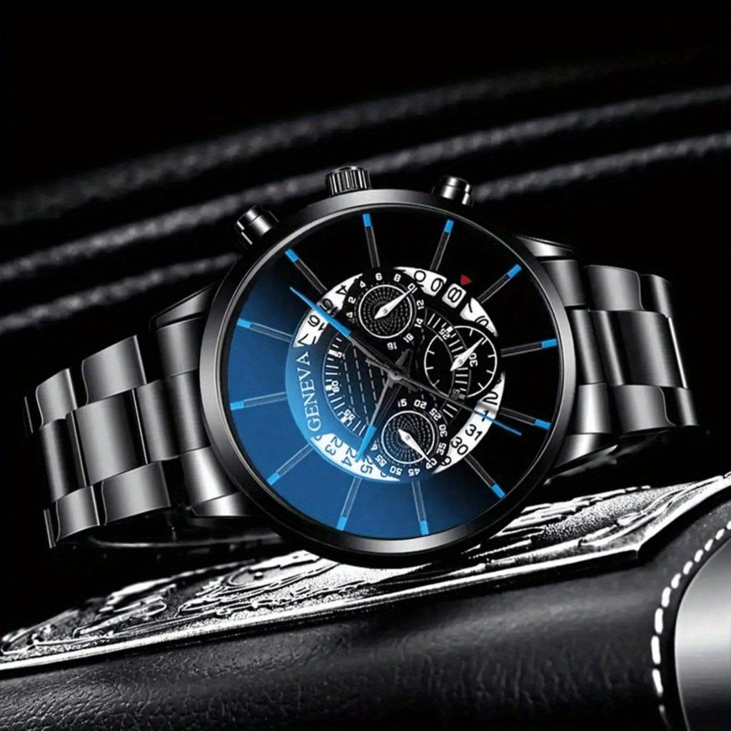 Fashion Men Black Stainless Steel Watch Luxury Calendar Quartz Wrist Watch Mens Business Watches for Man Clock