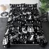 Black Cat Theme Duvet Cover Three-Piece Set Black And White Kitten Print Bedding Set Quilt Cover Pillowcase