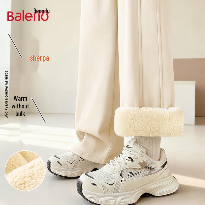 Baleno Women's Winter High-Waist Fleece-Lined Straight Wide-Leg Pants