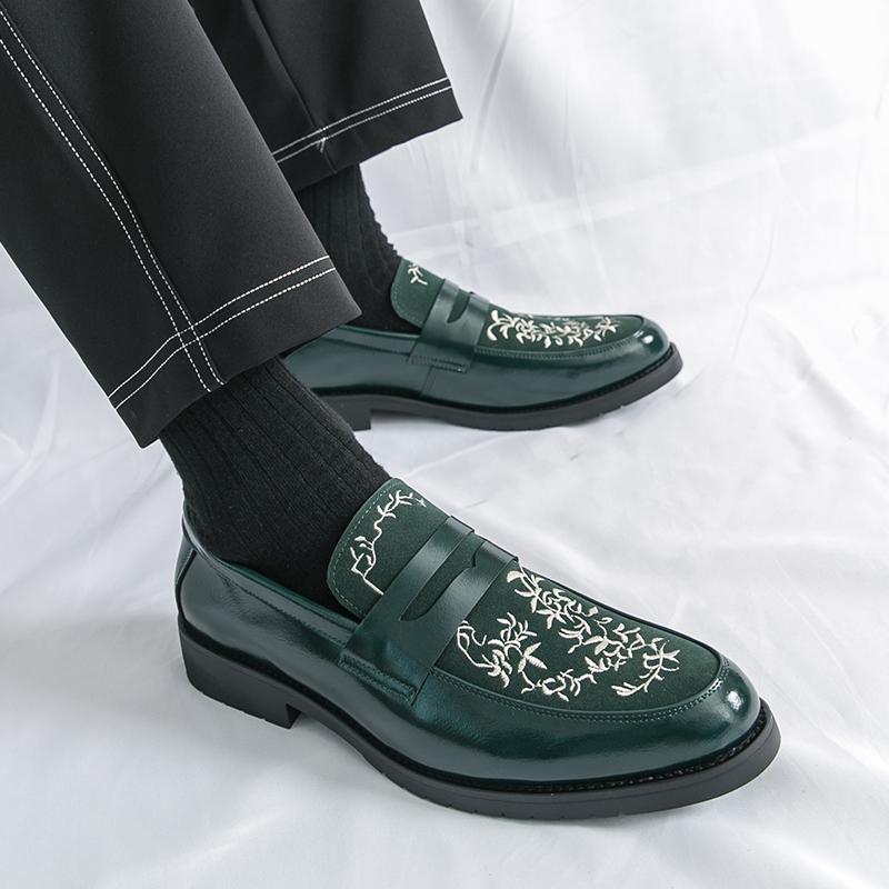 Fashion Fashionable Embroidered Leather Loafers Men's Korean Style Trendy Comfort Slip-on Shoes Brand Mens Business Low Cut Casual Shoes