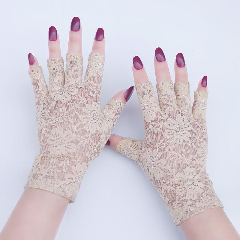 Hot Women Short Lace Half Finger Lace Sun Protection Gloves Fingerless Lace Wedding Decoration Gloves Fingerless Style