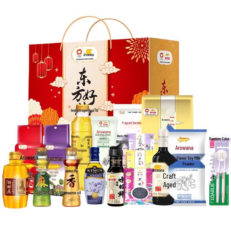 This Darlie toothbrush set features two soft-bristled, regular head toothbrushes designed for deep cleaning. Included is an exclusive Arowana Eastern Gift Pack E, perfect as an employee welfare item. Made in Anhui.