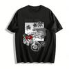 White T-Shirt with Motorcycle and Palm Tree Sunset Beach Scene Print for Casual Wear
