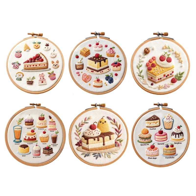 Cake Dessert Theme Embroidery Set with Embroidery Hoop and Instructions Beginner Embroidery Craft Set for Art Craft