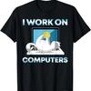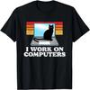I Work On Computers - Funny Cat Lover Kitten Kitty T-Shirt