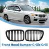2Pcs Car Grille Double Line Front Bumper Kidney Grille Compatible For E84 X1 18i 20i 25i 28i 2009-2015 Auto Accessories