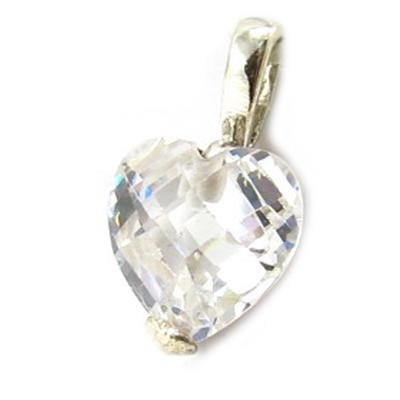 [F6316] - Gümüş 'Kristal Kalp' Beyaz Kolye