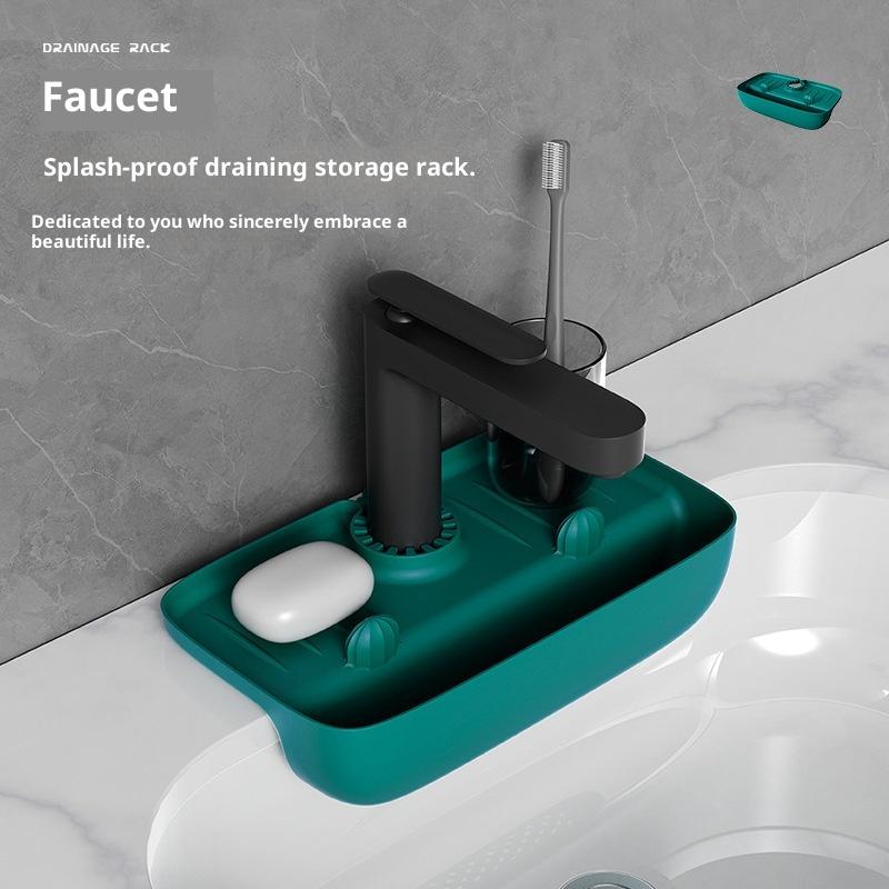 Silicone Kitchen Faucet Mat Splash Guard Sink Mat With Sponge Holder Caddy Catcher Bathroom Countertop Mat