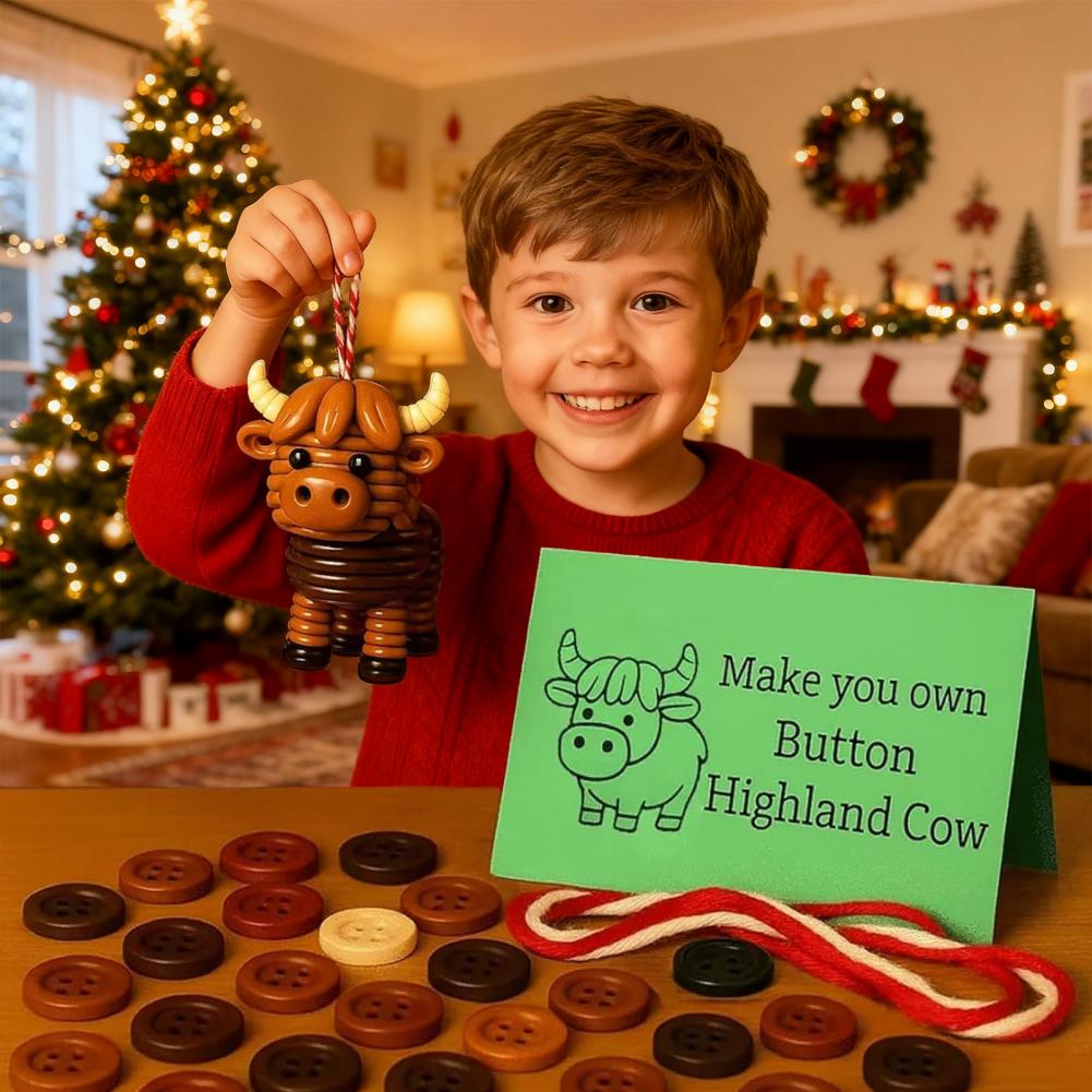 Eye-catching Diy Ornaments Christmas Decorations Handmade Highland Cow Button Ornament Kit for Christmas Decor Diy for Holiday