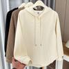 Kapşonlu Sweatshirt Kadın Rahat Düz Renk Üstler Spor Streç Sweatshirt Üstler