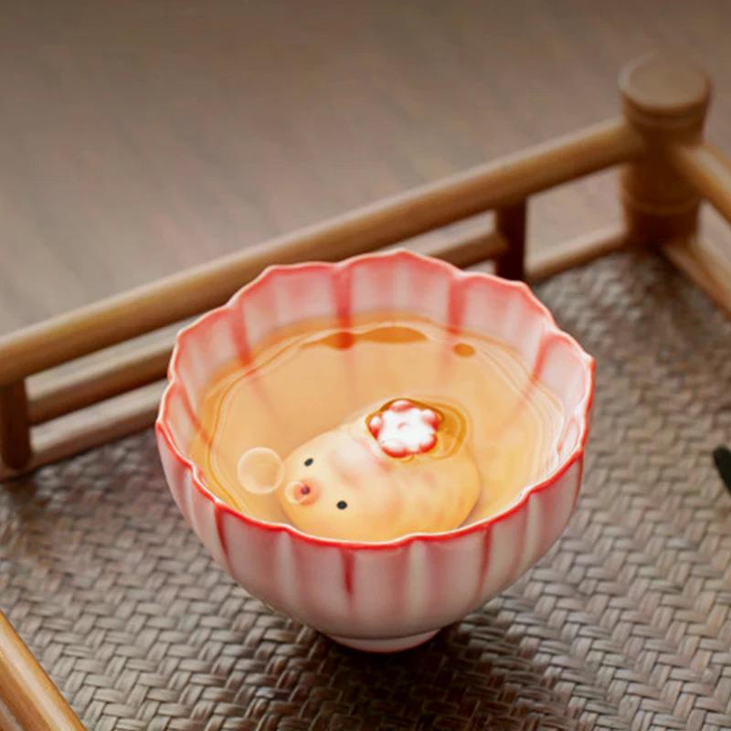 Seramik Çay Evcil Hayvanı Balık Heykeli Küçük Balık Fincan Altında Kabarcıklar Çıkarıyor Pembe Kabarcıklar Domuzcuk Süsü Su Bardakları Kupa Dekor Hediye