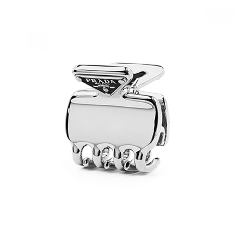 This metal hair clip showcases Prada's iconic triangle logo. Designed in a mini size, it is practical and exudes a sophisticated mood with its steel gray color. Manufactured in Italy, it allows you to experience Prada's luxurious design and quality. Suitable for everyday use as well as special occasions, it makes for an ideal statement accessory.