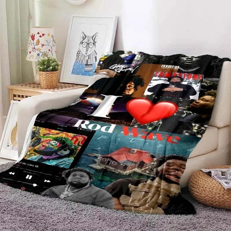 Hip Hop Rapper Blanket Rod Wave Flannel Blanket Soft Warm Throw Bedroom Decor Napping Couch Sofa Bed Chair Cover for Boys Girls