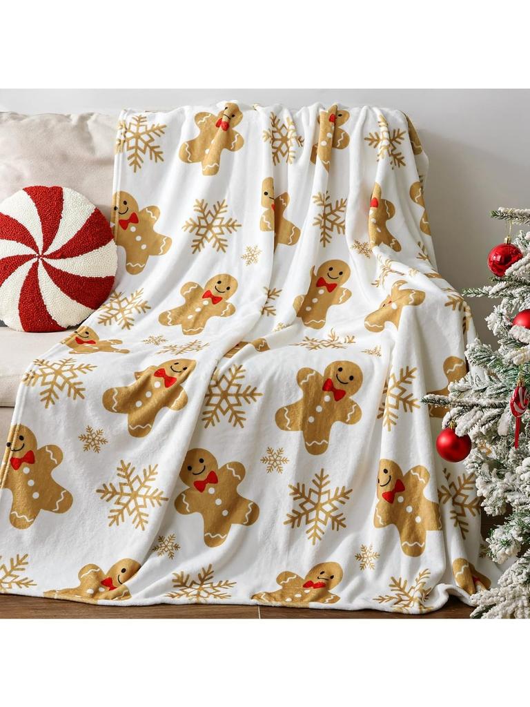 Christmas Gingerbread Throw Blanket: Ultra Soft White Flannel Plush Gingerbread Man Bed Blanket, Lightweight Cozy Christmas
