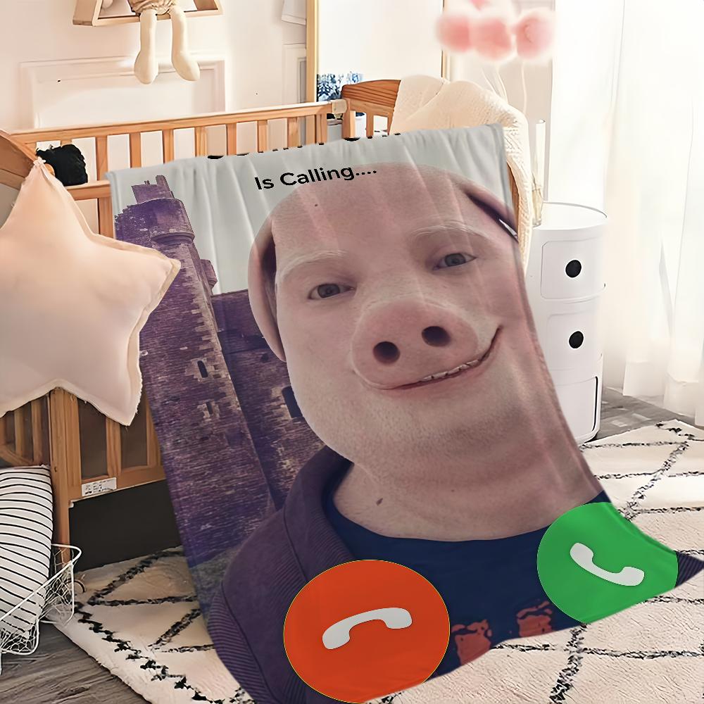 John Pork Smiling Pig is Calling Blanket Blanket for Couch Sofa Travel Home Picni Flannel Blanket birthday gift Warm Comfortable