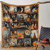 Comfortable Retro Halloween Themed Pumpkin and Bat Patterned Flannel Blanket Soft and Warm Multifunctional Ideal Gift Blankets