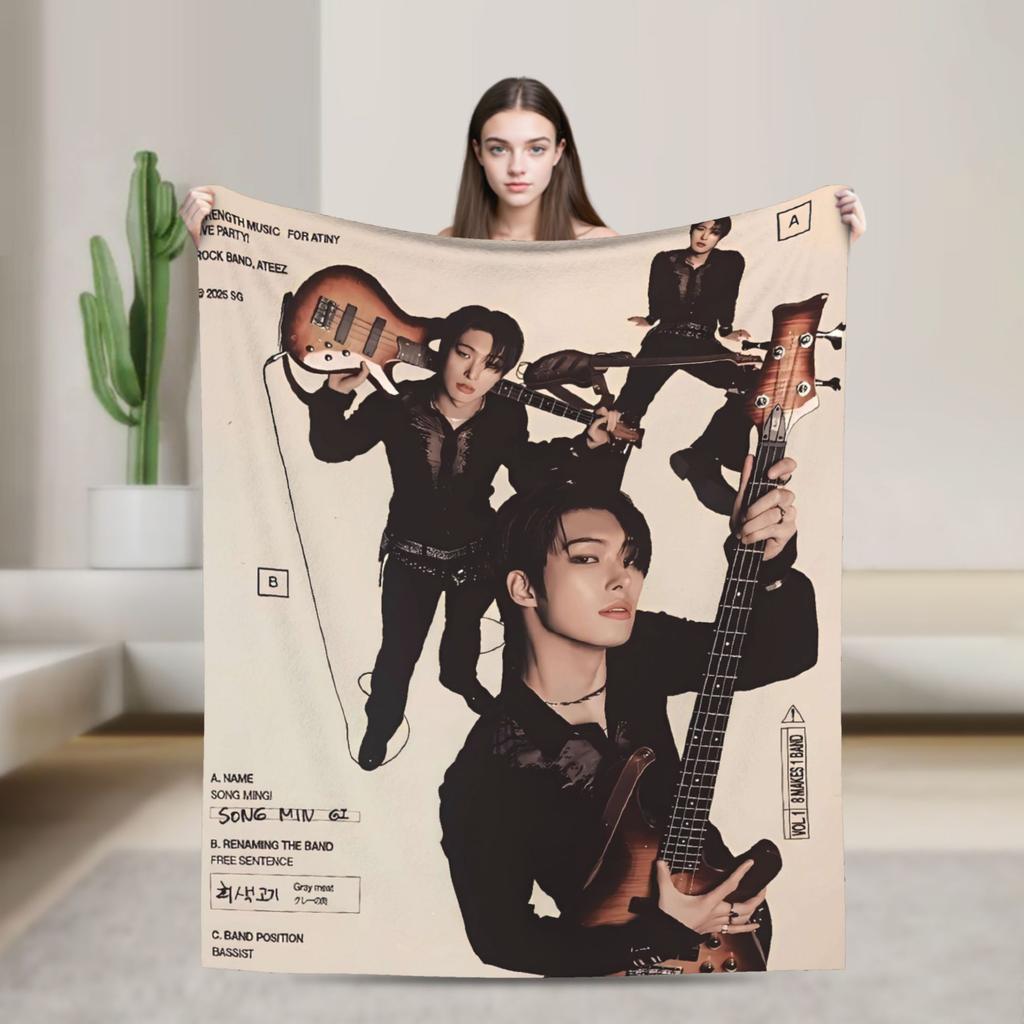 Kpop Ateez Band Soft Warm Blanket Picnic Plush Throw Blanket Street Trend Outdoor Flannel Bedspread Sofa Bed Cover
