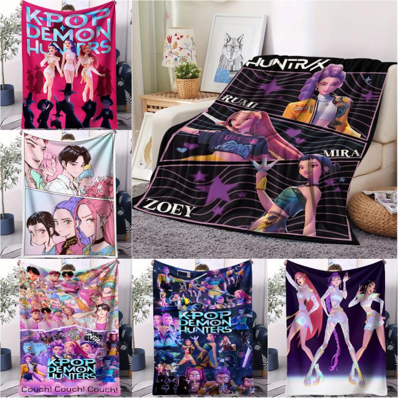 K-Pop Demon Hunters Fan Gifts Blanket Anime Flannel Throw Blanket Suitable Home Leisure Camping Travel Multifunctional Blanket