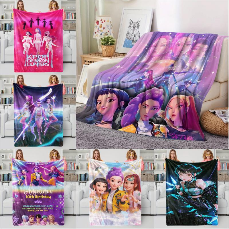 K-Pop Demon Hunters Blanket Girls Boys Plush Throw Blanket Novelty Warm Blanket All Season Huntrix Fan Gift for Office Travel