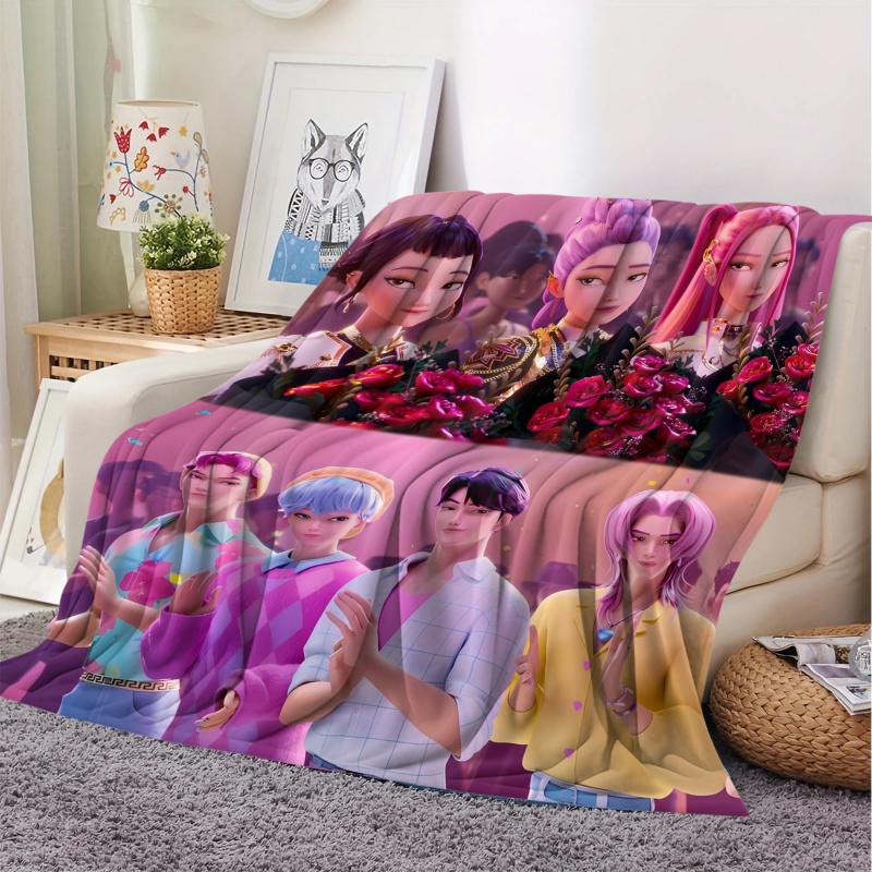 K-Pop Demon Hunter Blanket Hot Anime Girl Team Flannel Throw Blanket Winter Warm Blanket for Living Room Sofa Bed Cover Fan Gift